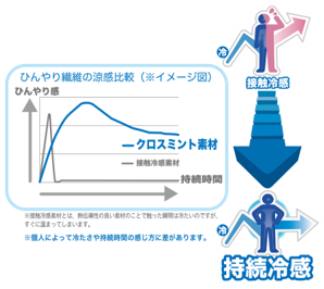 ミント+キシリトールによる持続冷感設計で、一般的な接触冷感製品と比較して長時間の冷感が期待できます。